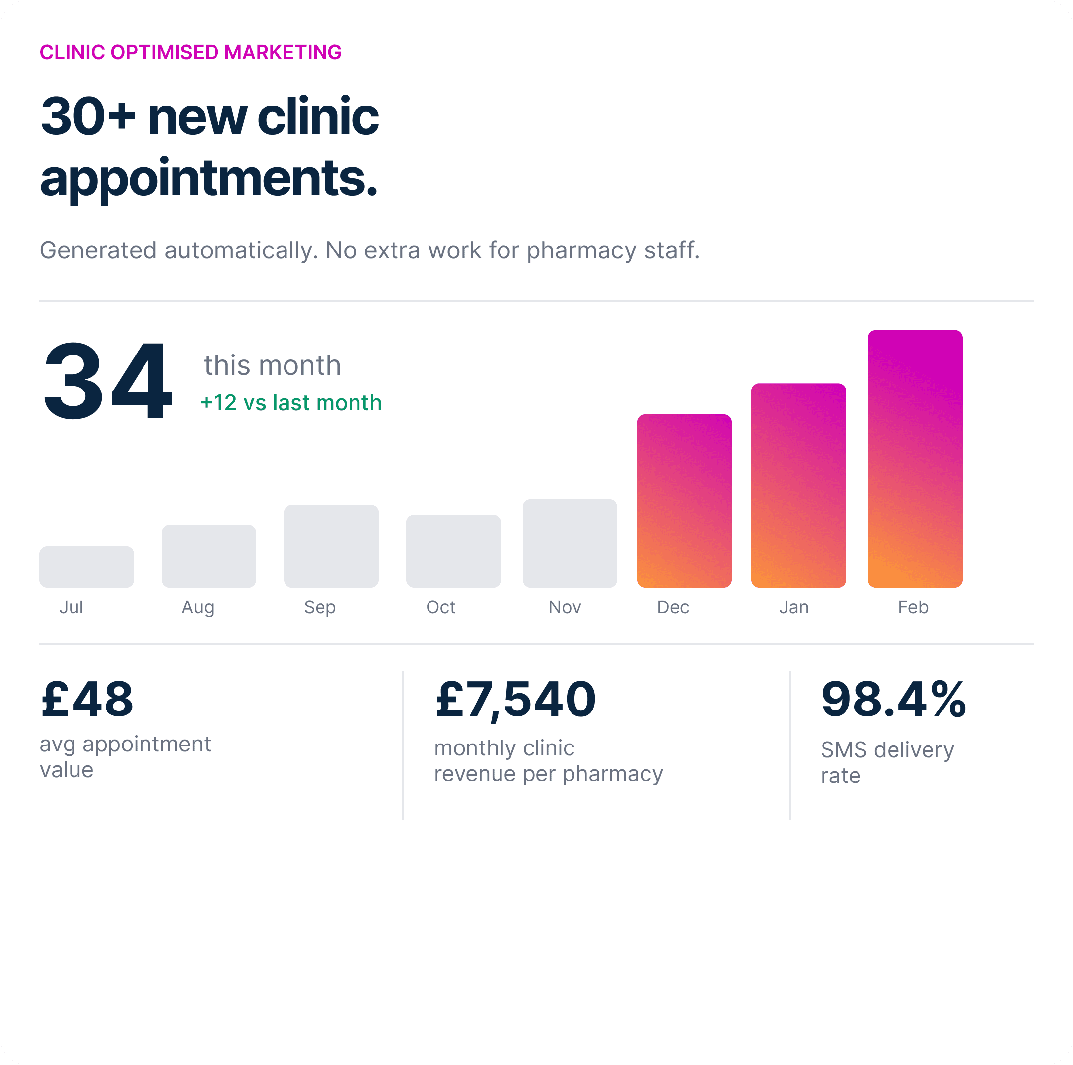 We focus on hard, commercial metrics, not vanity numbers. You’ll be able to see: How many patients were contacted. How many clicked or replied. How many booked an appointment from each campaign or automation. The revenue generated from those bookings. From there, the maths is simple: extra bookings × average fee per booking versus platform + SMS cost If the uplift in clinic revenue doesn’t comfortably outweigh the cost, we adjust targeting, timing and messaging until it does.